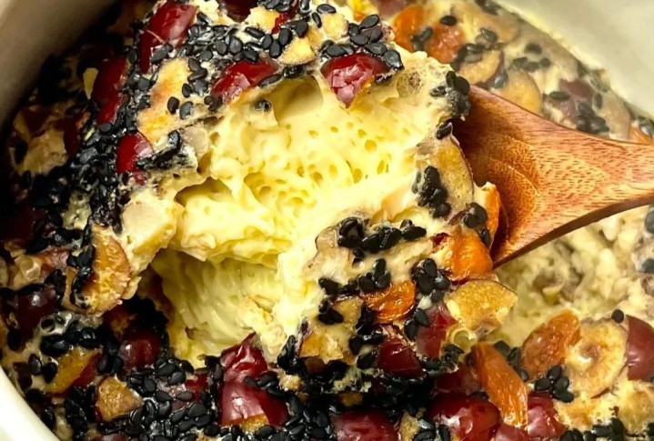 2. **红枣碎蒸蛋羹**:红枣和核桃仁切碎,加到搅散的鸡蛋液中,再边搅边倒入牛奶,上锅蒸。