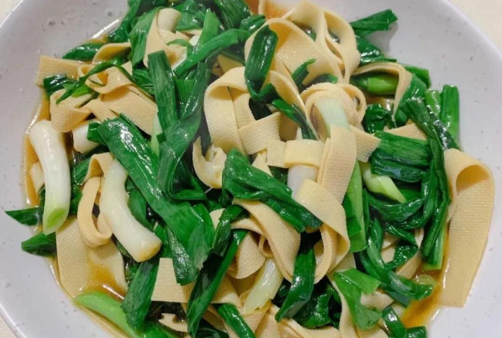 1. **蒜苗炒千张**:蒜苗洗净切段,锅中放少量油,倒入蒜苗炒到断生,加入提前焯水的千张,调味用盐和生抽,最后加点水焖煮。